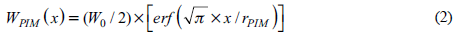 Where W0 represents the max subsidence value and can be calculated by W 0 = mx cosa x q PIM , q PIM is a parameter in the PIM named subsidence coefficient whose value is mainly determined by the lithology of the overlying rock, and its value is generally less than 1. r PIM is another parameter in the PIM named main influence radius.