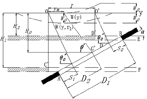Where L represents the width for calculation of the coal seam and can be calculated by L = (D 1 - S 1 - S 2 ) X sin (θ GM + α ) / sinθ , θ GM , S 1GM and S 2GM are parameters of the GM named mining influence propagation angle, inflection point offsets in the downhill direction and inflection point offsets in the uphill direction.