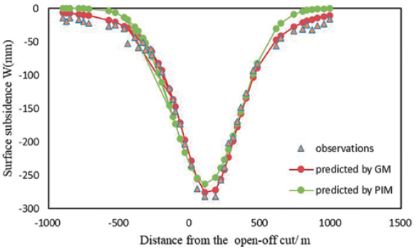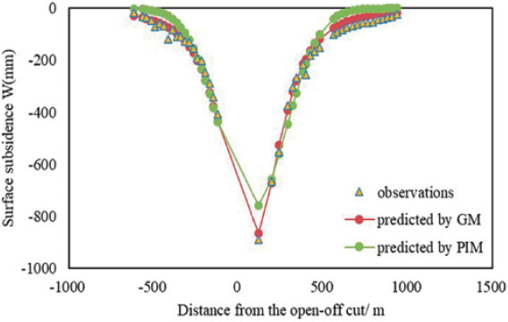 Table 4 Fitting effect comparison of the GM and the PIM for the 1111(1) working face