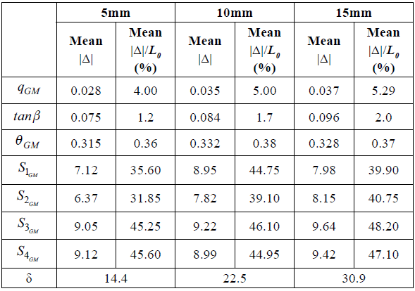 1. the relative errors of q GM , tan β GM and θ GM inversed by the ICSA are all less than 6%, and the errors of S 1gm , S 2gm , S 3gm and S 4gm are all less than 10mm. Indicating that the errors of the parameters inversed by the ICSA are all within the normal range. The average values of the errors of qgm , tanβ GM and θ GM are all less than 1, indicating that the results calculated by the ICSA are stable and reliable.