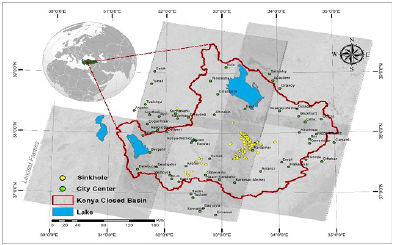 Konya Closed Basin covers 800 km2 of Hotaş Plain (including marsh), 700 km2 of Karapinar Plain, 500 km of Karaman Plain, and 2500 kirf of Eregli Plain (including Ayranci Plain) (inan et al. 2006). The formation of sinkholes has increased in recent years in and around the Konya Closed Basin. This is presumed to be due to the decrease in groundwater levels, which has been reported in Akgõl (Eregli), Acigõl (Karapinar) and Timraç lakes, and Meke salt pan (Karapinar) (Gõçmez et al., 2004).