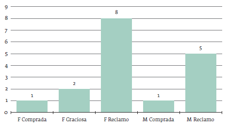 Miremos ahora los tipos de libertad por ciudad para conocer luego su correspondencia con el sexo de los esclavos. Según las gráficas que siguen, hubo cinco libertades compradas, diez libertades graciosas y veinticuatro libertades por reclamo o demanda judicial. Esto representa, respectivamente, el 13, 26 % y 61 %. Entre las compradas hubo dos casos en Cartagena (5 %) y tres casos en Mompox (8 %). En cuanto a las libertades graciosas, dos fueron en Cartagena (5 %) y once en Mompox (21 %). Finalmente, las libertades por reclamo muestran trece casos en Cartagena (33 %) y once en Mompox (28 %). La diferencia significativa está entonces en la libertad graciosa, con un mínimo para Cartagena. Esto coincide con las resistencias y limitaciones en el mundo de los esclavistas con respecto a los caminos de movilidad social que se abría para los esclavos. Esta caracterización muestra además que la retención de los esclavos por parte de los amos en Cartagena estuvo asociada a la transición y necesidad que tenían del recibimiento de jornales por cargo del trabajo de aquellos. Lo cual no necesariamente niega la ubicación de una parte de la población esclava de la ciudad en el servicio doméstico, como sí sucedió en su mayor en Mompox.