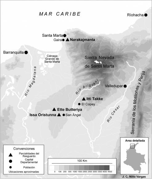 En 2002, con la firma del gobernador del Cabildo del resguardo, el Merck Sharp y Dohme de los Estado Unidos compró una finca, la cual entregó a la población indígena desplazada; hoy la finca es conocida con el nombre de Naara Kaj manta ("piel de la Madre Tierra") y se ubica cerca del corregimiento de Gaira. Esta comunidad se considera un reasentamiento, con una extensión de 92 hectáreas y una población de 164 personas, constituyéndose como parte integral del Resguardo Issa Oristynna (ver mapa 1).