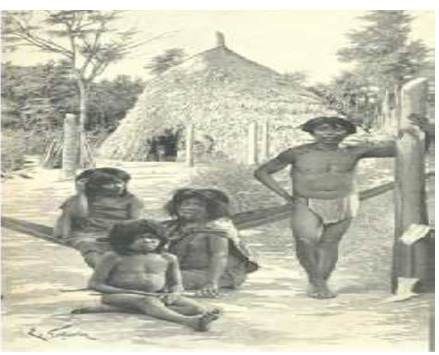 Figura 2." Case et indiens Chimilas" por E. Gotorbe. Le tour du monde, 1898, p. 463