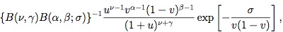 where 0 < u < 1 and y > 0. The marginal density of Y is obtained by integrating the above expression with respect to v using (9).