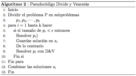 Un esquema de esta metodología de divide y vencerás puede apreciarse en el Algoritmo 2.