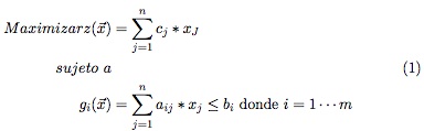 Las restricciones son las relaciones que delimitan el espacio de búsqueda, es decir, son condiciones que deben cumplirse mientras se busca una combinación de valores de las variables de decisión para optimizar el objetivo [27]. El esquema de un problema de programación lineal se muestra en la ecuación 1, para un problema de maximización.