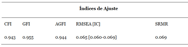 El modelo arrojó adecuados índices de ajuste, superiores a 0.90 para los casos de CFI, GFI y AGFI, e inferiores a 0.08 para RMSEA y SRMR (tabla 1) (Schumacker y Lomax, 2015).