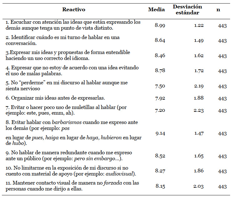 Acorde al objetivo de este estudio, se diseñó una escala de auto-eficacia percibida para comunicación oral y escrita en entornos laborales de la siguiente forma:
