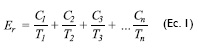 La legislación colombiana contempla los descriptores de ruido a partir de la sumatoria de los valores en nivel de presión sonora con respecto al tiempo que el operador estuvo expuesto al ruido. Es decir, que cuando se presenta más de un periodo de exposición se considerará el efecto en combinación y no como eventos aislados. La fórmula aplicable según el artículo 43 es la de la Ecuación 1.