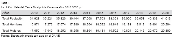 La Unión es un municipio que tiene una extensión aproximada de 121 km2, cuenta cerca de 37.703 habitantes, de los cuales 18.204 son hombres y 18.864 son mujeres, de acuerdo con el DANE, para el año 2014 (Ver Tabla 1, pág. 56). En cuanto a servicios públicos se cuenta con coberturas del 98% en energía eléctrica; 90% en acueducto; 42,33 % en gas y un 31 % en telefonía fija, según el DNP.