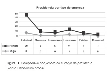 A partir de lo anterior, es considerable la brecha existente en las empresas en cuanto a la designación del cargo de presidencia, esto responde en parte a lo que se llama segregación del mercado laboral: horizontal, cuando hombres y mujeres se concentran en determinados sectores de producción y empleos específicos; y, vertical, cuando se produce esta concentración en grados y niveles de responsabilidad específicos.