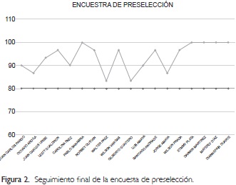 Se estableció un nivel mínimo de cumplimiento en los ítems de la encuesta de un 80%. Se estimó que si el candidato manifestaba un mal estado de salud, falta de disposición, falta de disponibilidad o disgusto por el licor de cacao se consideraba no apto de manera directa.