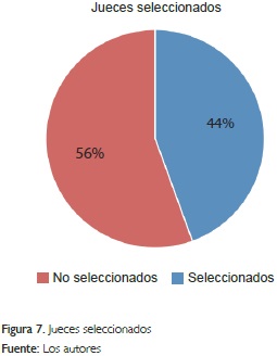 De este proceso tenemos un 44% de jueces preselecciona-dos como jueces expertos en entrenamiento, como se evidencia en la Figura 7, apoyados en el análisis de ACP -Figura 8- que permitió visualizar la correlación de cada juez con los atributos sensoriales del licor de cacao.