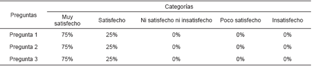 En los resultados de la encuesta de satisfacción de docentes universitarios de lengua inglesa -no licenciados- del Centro de Idiomas de la Institución Universitaria Antonio José Camacho UNIAJC, se demostró que el 75% de los docentes expresaron estar muy satisfechos con las acciones de la estrategia pedagógica para el mejoramiento del desempeño profesional pedagógico en las actividades docentes. También, el 25% de los docentes expresaron su alto grado de satisfacción, es decir, el I00% se encontraron ubicados en las dos categorías más altas. Se evidencia así, el impacto positivo que tuvieron las acciones de superación desarrolladas en el marco de la estrategia. En la Tabla 16 se pueden observar los resultados obtenidos de la encuesta de satisfacción.