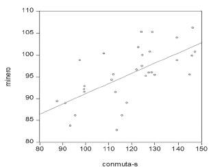 La dinámica de los conmutantes de la Región del Biobío se correlaciona positivamente con algunos los índices sectoriales de actividad económica. De esta manera se puede señalar que la dinámica de los conmutantes oferentes (salen) sigue el ciclo de la actividad minera y manufacturera del País. Por otra parte, referido a los flujos de conmutantes de demanda (llegan) se correlaciona positivamente con el ciclo de la actividad agrícola. Estas correlaciones se fundamentan en las Figuras 2, 3 y 4.