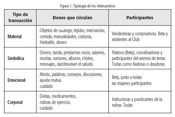 Recordemos pues cómo el don no es sólo otro sistema de intercambio económico que se contrapone al intercambio mercantil, sino que en realidad es un sistema social que genera lazos, un hecho social total, en términos de Mauss (1924). Es desde esa mirada específica que observamos lo que ocurre con las mujeres que asisten al Club; la deuda no sólo las vincula en términos económicos sino que va más allá, pues la participación en el intercambio implica establecer lazos de confianza, lo que a final de cuentas implica también establecer relaciones entre personas, y no sólo entre cosas.