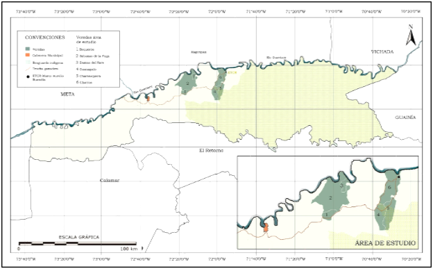 El territorio rural se caracteriza por presentar una ocupación de tipo disperso, agrupada en núcleos poblacionales de baja densidad o carente de población estable, principalmente, ligada al uso y manejo de bienes naturales comunes, bajo determinadas formas de producción, patrones culturales y arreglos institucionales históricamente construidos (Massiris 2015). En la Amazonia se encuentran “áreas rurales de campesinos y colonos de asentamiento disperso” conformadas por “la constelación de veredas y fincas” como “célula primaria de la organización social del espacio rural campesino” (Salazar y Riaño 2016, 93). No obstante, aunque los territorios veredales en el Guaviare comprenden extensas áreas de poblamiento disperso, clasificadas como rurales, se trata de zonas donde predomina el medio selvático, sin que se pueda asociar lo rural a la existencia de modos organizados y eficientes de producción agrícola o silvopastoril ni a un campesinado dedicado a esta actividad (Jimeno 1987; Marín 2002).