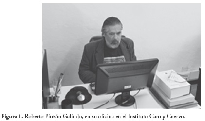 La Redacción de la Revista Científica General José María Córdova quiere rendir homenaje a don Roberto Pinzón Galindo, corrector de estilo, editor y traductor del Instituto Caro y Cuervo. No se ha muerto, enhorabuena, pues los homenajes también se rinden a los vivos. «A punta de toques sutiles», le dijo alguna vez un escritor, «usted ha revelado lo que yo quería, pero no me había dado mañas de expresar». Sus apuntaciones filológicas sobre edición de textos, que se publican a continuación, son un verdadero regalo de la escritura, redactadas con pulcritud y fino humor, adobado con sal ática, que muy seguramente inspirarán a los lectores de todas las áreas del conocimiento. Frente a su computador, y detrás de una fotografía que muestra la biblioteca personal, en París, de don Rufino José Cuervo Urisarri, “el filólogo y lingüista colombiano más importante de todos los tiempos”, tal vez se despliegan sus “Apuntes de corrección y computadores”, o acaso por ventura se encuentre en la fase final de una paciente labor, la digitación para la era de la cibercultura de La llave del griego, de los padres Eusebio Hernández y Félix Restrepo. Pertenece al noble gremio de editores Sin Título, su editorial in fabula que algún día se hará realidad: publicará libros que hablen como personas, para que las personas no hablen como libros. Su legado, en efecto, es una diatriba contra el intelectual posmoderno: