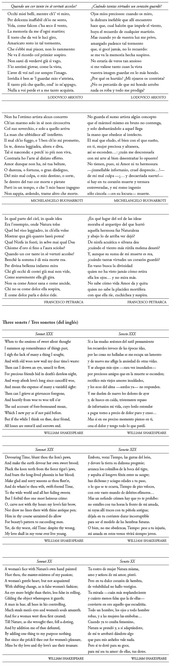 Tre sonetii / Tres sonetos (del italiano)