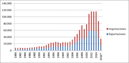 | Exportación | 134.143.312 | 133.957.730 | 127.976.635 |