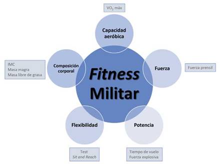 Los programas de entrenamiento militar son estándares a nivel mundial. En todos los cursos militares, el adiestramiento de acondicionamiento físico se centra en mejorar las condiciones cardiorrespiratorias y de resistencia muscular (Haddock et al., 2016), pero cada vez es más frecuente encontrar en la literatura que la evaluación de otras condiciones físicas, como la composición corporal, la flexibilidad y la fuerza propulsiva, son igualmente importantes para la caracterización de todos los condicionantes del fitness militar (Cubides, 2020).