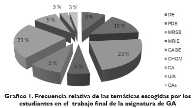 El estudio se realizó durante el segundo semestre de 2013, con tres grupos, de aproximadamente 45 estudiantes cada uno, que cursaban la asignatura de GA, dictada de manera transversal a todos los estudiantes de las distintas carreras tecnológicas y profesionales del ITM.