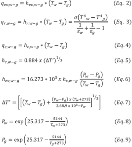 (4) show, in turn, how heat is transferred from water to the glass cover by convection, radiation, and evaporation (5) to (9).