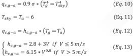 (equations (12) and (13)) correspond to the heat transfer by radiation and convection between the glass cover and the environment.