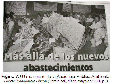 27 Se posibilitó una multitudinaria concentración de habitantes urbanos y rurales de los municipios afectados, especialmente de la localidad de Piedecuesta. "En audiencia se comenzó a mojar la palabra", tituló Vanguardia Liberal (18-02-1999). Arribaron las comunidades con la bandera nacional y pancartas alusivas a la defensa de las aguas, de la biodiversidad, de los páramos, de su economía campesina, en últimas, de la vida.