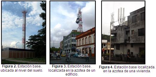 Respecto a los factores propios de las estaciones base, es importante determinar el tipo de estructura que sirve de soporte al conjunto de antenas de telefonía móvil (v.g. se evidencian tres casos: antenas ubicadas en torres o mástiles localizadas al nivel del suelo (ver Figura 2), antenas en torres ubicadas en las azoteas de los edificios (ver Figura 3) y antenas ubicadas en la parte superior de un edificio o vivienda de menos de tres pisos (ver Figura 4).