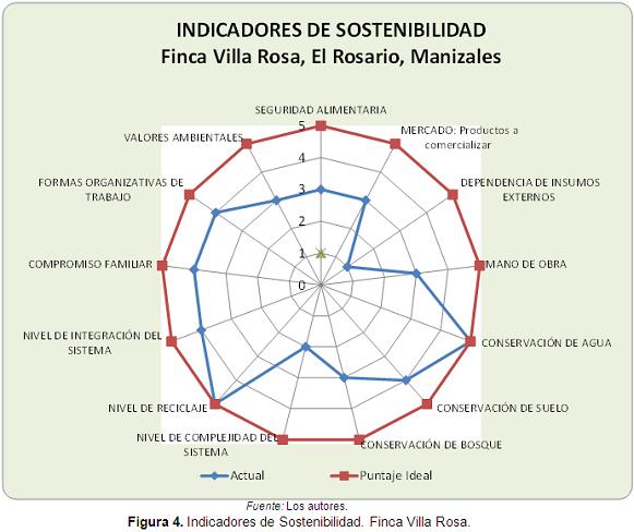 A pesar de contar con la certificación UTZ, algunos aspectos por mejorar en la finca Villa Rosa son la alta dependencia de insumos externos, el nivel de complejidad del sistema, además de fortalecer los valores ambientales, la seguridad alimentaria y diversificar la producción para la venta (Figura 4).