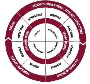 | Supervisión y revisión: la última fase del proceso consiste en determinar la eficacia de las medidas de control de riesgo durante la operación. Las acciones que integran esta fase son: supervisar, revisar e incorporar los datos (Perales, 2010). |