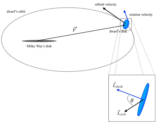 For the set of initial conditions in the Table 5 the evolution of the Sagittarius progenitor is simulated using GADGET-2 during 7 Gyr with several angles of inclination θ between the angular momentum of the disc and the angular momentum of the orbit in the range 0° ≤ θ ≤ 180° (see Figure 3). For the simulations the softening lengths shown in Table 4 were used. We constructed a program to set the initial conditions of the orbit of the progenitor and the inclination of the disk respect to the plane of the orbit (angle θ) in the format required by GADGET-2.