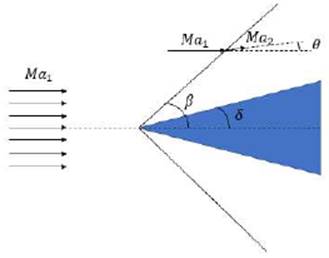 Para la correcta operación de los motores ramjet el flujo de entrada es supersónico, razón por la cual se deben estudiar los efectos causados por las ondas de choque en el difusor [4,5]. El flujo al chocar con el núcleo central del difusor (ver Fig. 1), genera una onda o abanico de choques oblicuos [6,7]. Sin embargo, no se puede garantizar que el lujo después de la onda de choque oblicua sea supersónico o subsónico, ya esto varía según la velocidad de entrada, el ángulo de cuña y el ángulo de choque. Por esto se debe tener especial cuidado en que el flujo después de la garganta sea subsónico [8][9].