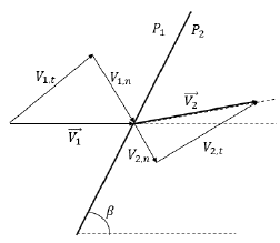 Con el fin de comprender el fenómeno físico originado por la onda oblicua, la Fig. 3 muestra la descomposición vectorial de las velocidades en un choque oblicuo antes y después de la onda.