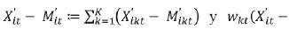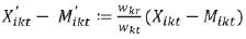 . Esta operación hace que en cada período los flujos comerciales de k resulten en el mismo peso de k para cualquier t, mientras que dicho peso corresponde al peso de un período de referencia denotado r.