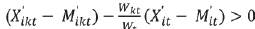 . La primera variable es el saldo comercial efectivo ajustado de i en k en t y la segunda variable es el saldo comercial total ajustado de i en t ponderado por el peso de k en el comercio total de de la zona en t. Esta segunda variable es el saldo comercial teórico ajustado de i en k en í que revela la ausencia de ventajas y desventajas.