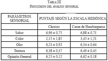 Los resultados del análisis sensorial se pueden apreciar en la Tabla III.