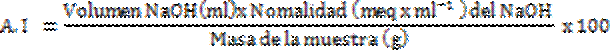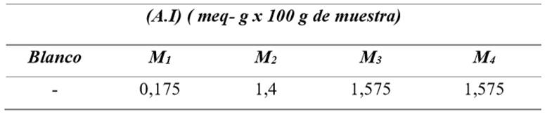 Determinación de acidez intercambiable (A.I.). Se pesó 10g de suelo seco y tamizado, en balanza de triple brazo, se agregó al tubo de centrifuga, se adicionó 80 ml de KCl 1N y agitó continuamente por 5 min. El sobrenadante se pasó a erlenmeyer de 250 ml. El residuo sólido fue eliminado. Al sobrenadante se adicionaron dos gotas de fenolftaleína al 0.1% y se tituló con NaOH 0.1N hasta aparición de tonalidad rosada pálida. Se anotó el volumen (mL). El blanco estuvo conformado por 80 ml de KCl 1N más 2 gotas de fenolftaleína 0.1%.