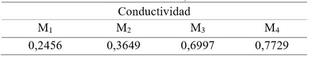Para el caso particular de la presente investigación, el blanco presenta la menor conductividad de todos los tratamientos, con un valor de 0,256; le sigue el tratamiento 1, con una conductividad de 0,3649; luego está el tratamiento 2, con un valor de 0,6997 y finalmente, está el tratamiento 3 con valor de 0,7729 (Tabla 6). Esto indica, que la adición de pilas tanto genéricas como alcalinas al suelo hace que la conductividad se incremente como resultado de los procesos de mineralización de los elementos y compuestos químicos aportados por las pilas al suelo, siendo estos datos de conductividad normales, según los datos de referencia del Instituto Geográfico Agustín Codazzi. [13]