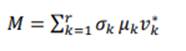 es el vector de valores singulares por la derecha traspuesta. Normalmente se aplica SVD a una matriz de bajo rango que cuenta con todas las entradas, obteniendo información útil que permita reconstruir la matriz original y obtener matrices de rango inferior, pero parecidas a M. Por lo anterior como el número valores singulares
