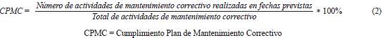 Asocia los mantenimientos que efectúa el operario versus los que se estipulan debe efectuar, debe estar entre 95% y 100% [11].