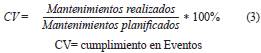 Se considera bueno un indicador mayor o igual al 95 % para el cumplimiento en eventos del plan de mantenimiento preventivo. El porcentaje de cumplimiento que permite evaluar la correspondencia de los procedimientos para el mantenimiento preventivo, inspecciones establecidas y planificadas debe ser ese. Las diferencias superiores al 10% merecen ser analizadas [10].