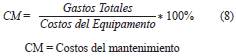 Bajo el mismo lineamiento, Gonzáles (2015) [17] considera que el costo de mantenimiento está entre 1,75% y el 5% del costo de adquisición del equipamiento, si este se mantiene dentro de estos límites es aceptable.