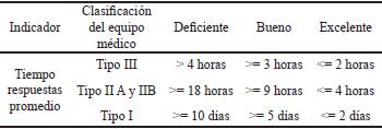 Está dentro del rango tolerable un porcentaje tolerable un 90% para este indicador. Tal como concluyeron los expertos encuestados. Para complementar la información, en el estudio de Rodríguez (2003) [10], encontró que algunos hospitales no registran el indicador como tal, pero asocian que los tiempos de correctivos presentan promedios en el orden de 1.5 horas y tiempos máximos de cambio de estado de unas 3 horas.
