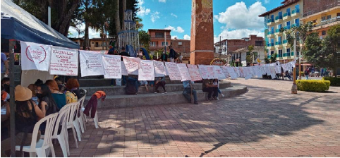 Figura 1 Plantón textil de El Ojo de la Aguja. Carmen de Viboral, Antioquia (10 de diciembre de 2020)