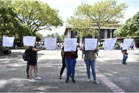 Figura 2 Plantón textil El Ojo de la Aguja. Universidad de Antioquia (30 de julio de 2018)