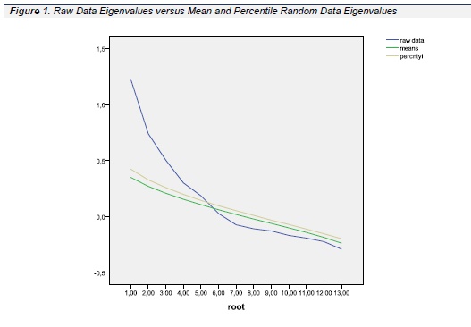 Parallel analysis determined five factors to be extracted (see Table 1 and Figure 1).