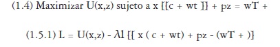 (1.5.2) L = U(x1, x2) - Al [[(c1 + wt1)x1 +(c2 + wt2)x2 + pz - wT - y0 ]